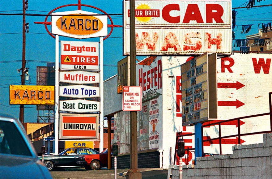 翻阅他的其他作品,会发现 Eggleston 经常在最普通的地方发现精彩——无论是乡镇街道、路边小餐馆、昏黄的房间,还是一辆褪色的老车。他用色彩来构建情绪,用构图去捕捉某种恰到好处的日常感。他的照片不是在告诉你“这是什么”,而是在让你“感觉这是什么”。这种视觉方式让我非常受启发。